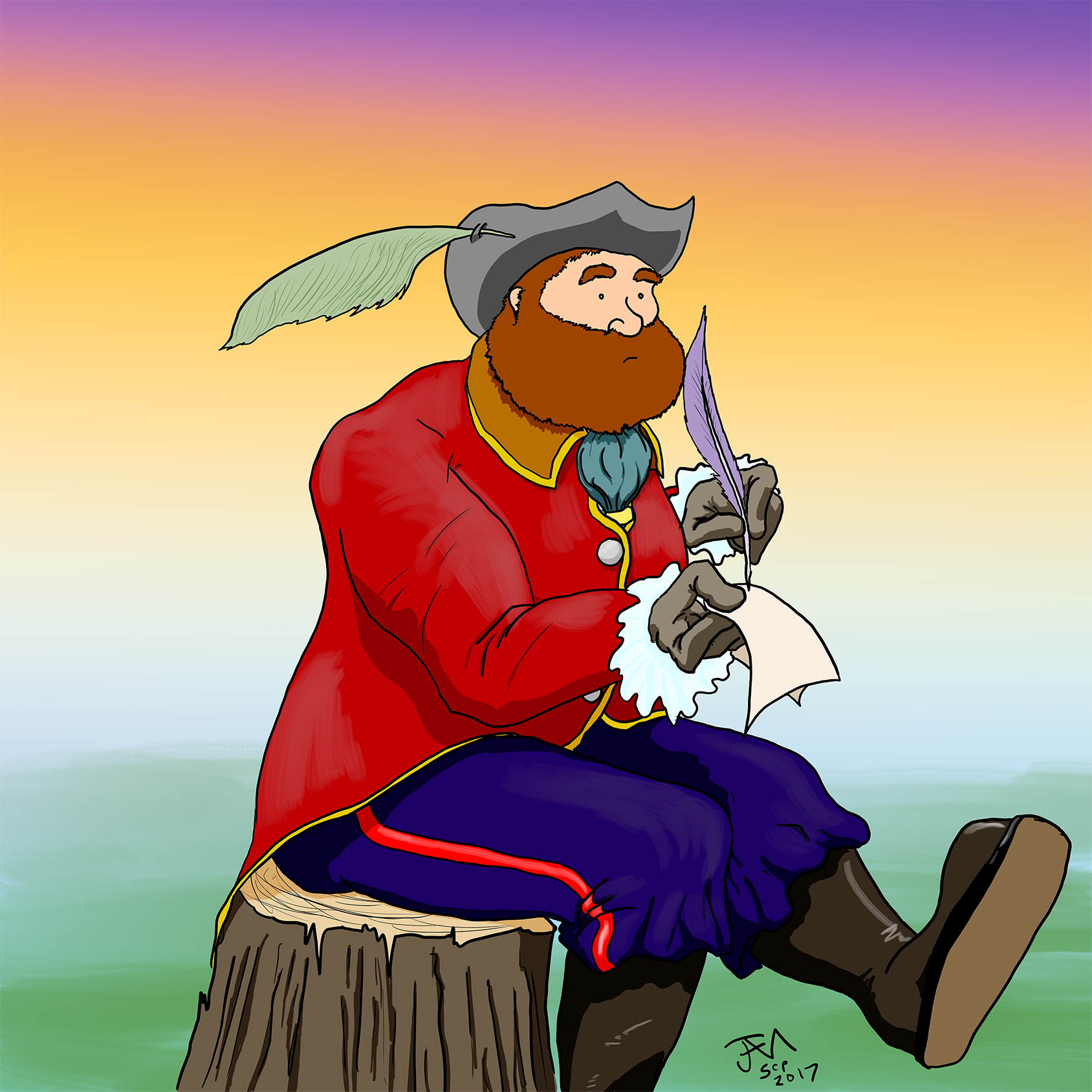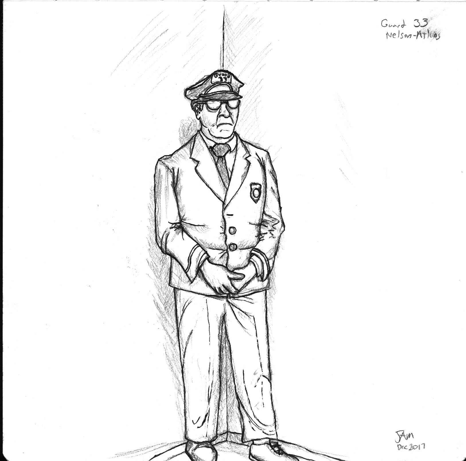 31 December 2017A sketch of the wax statue of a 1970s museum guard at the Nelson-Atkins Museum. |