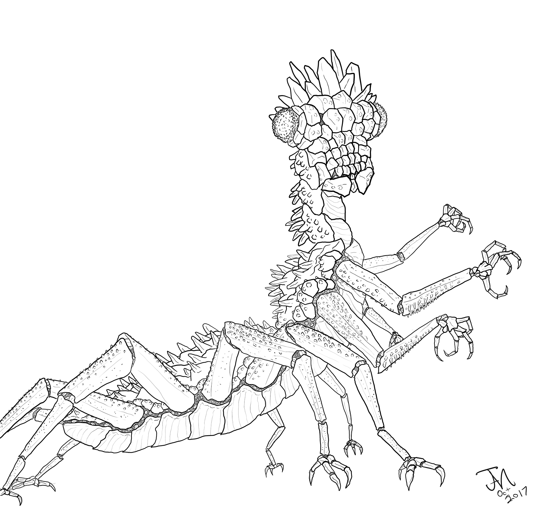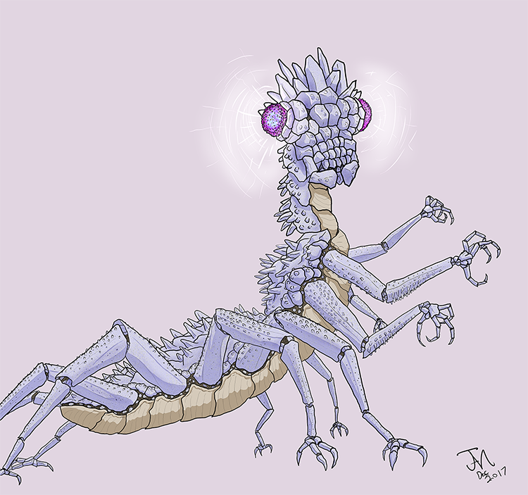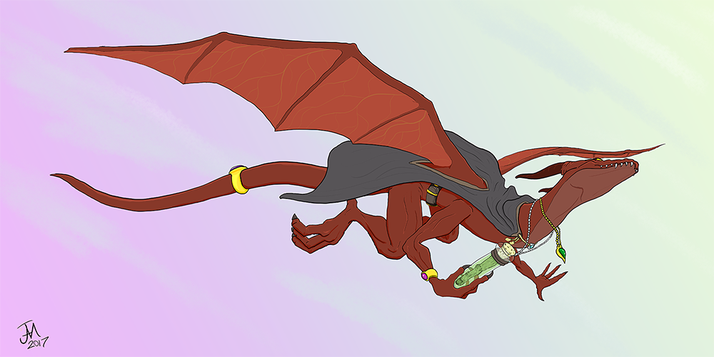 24 December 2017A drawing of the evolution of the pseudodragon Dungeons and Dragons player character after going through a mysterious reconstruction with tissue from his former, human body. |