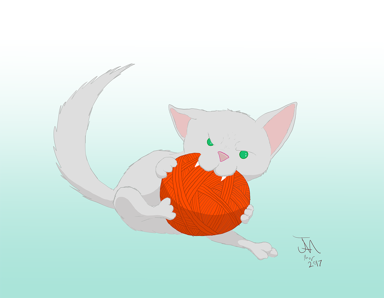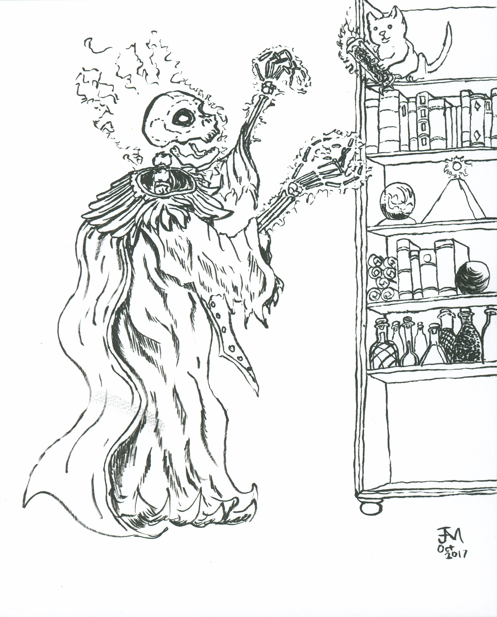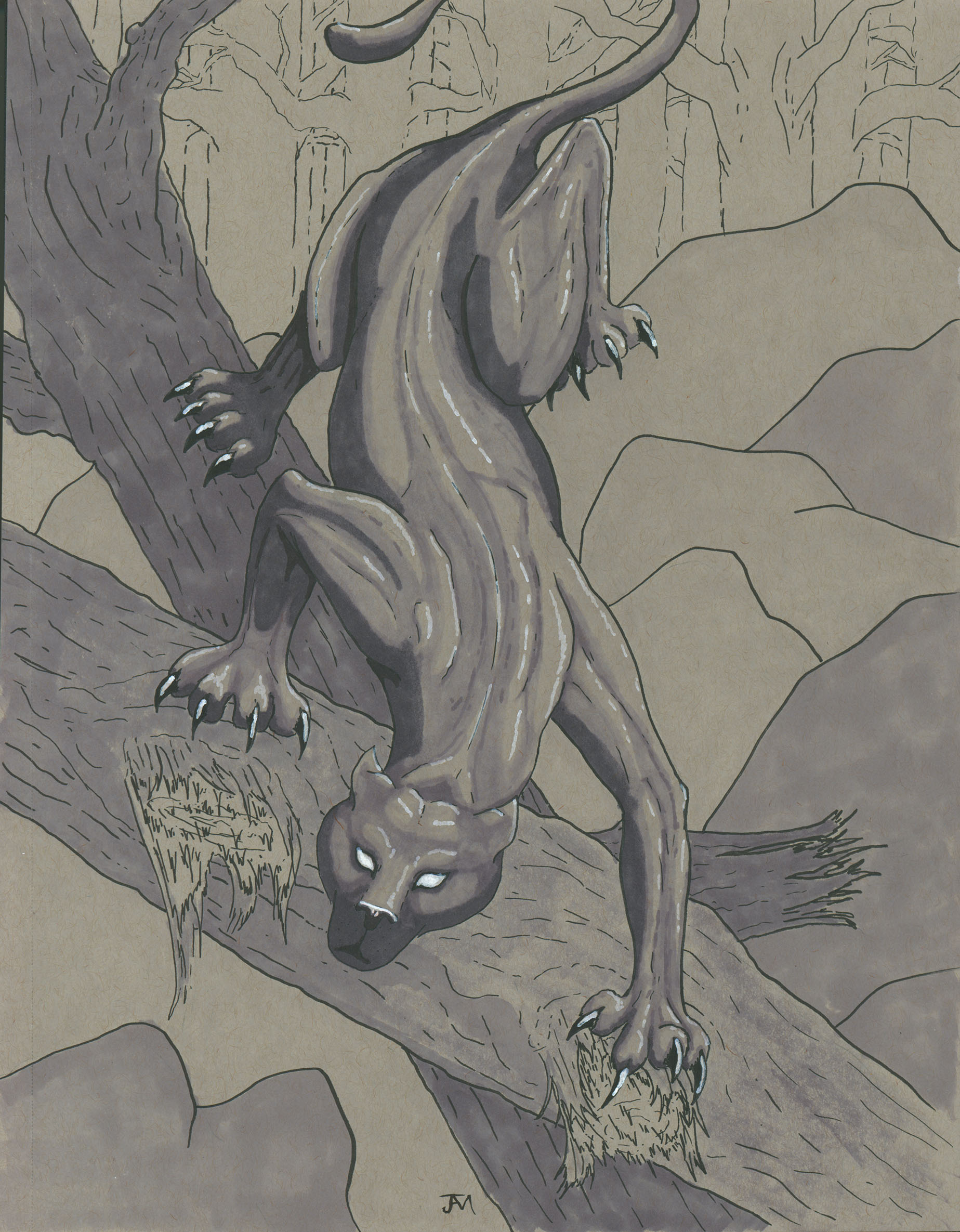 April 2017A pen, grayscale marker and white paint pen drawing of a panther. I wanted to challenge myself to draw a big cat, given my difficulty with cat head shapes. |