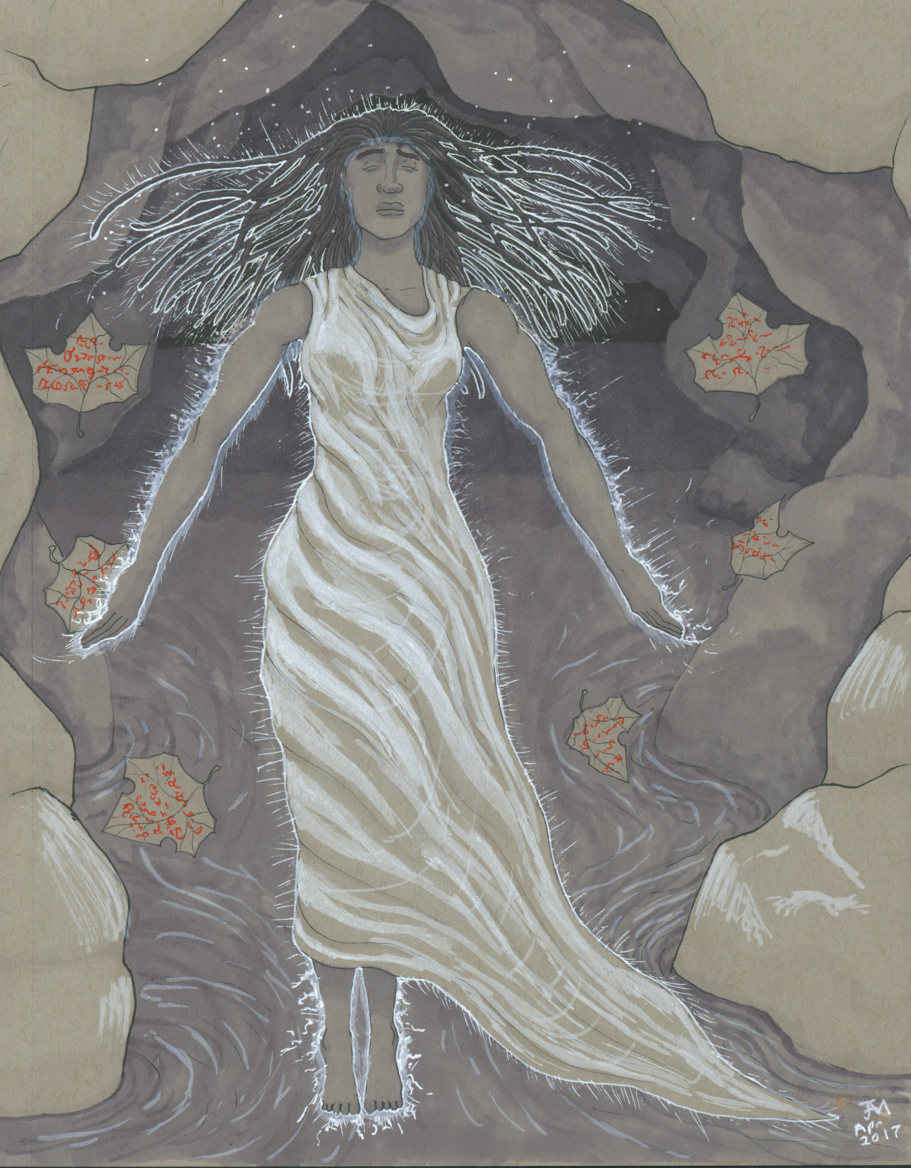 April 2017A pen, grayscale marker and white paint pen drawing of a Sibyl prophet. This drawing was inspired by the book Sibyls: Prophecy and Power in the Ancient World by Jorge Guillermo. |