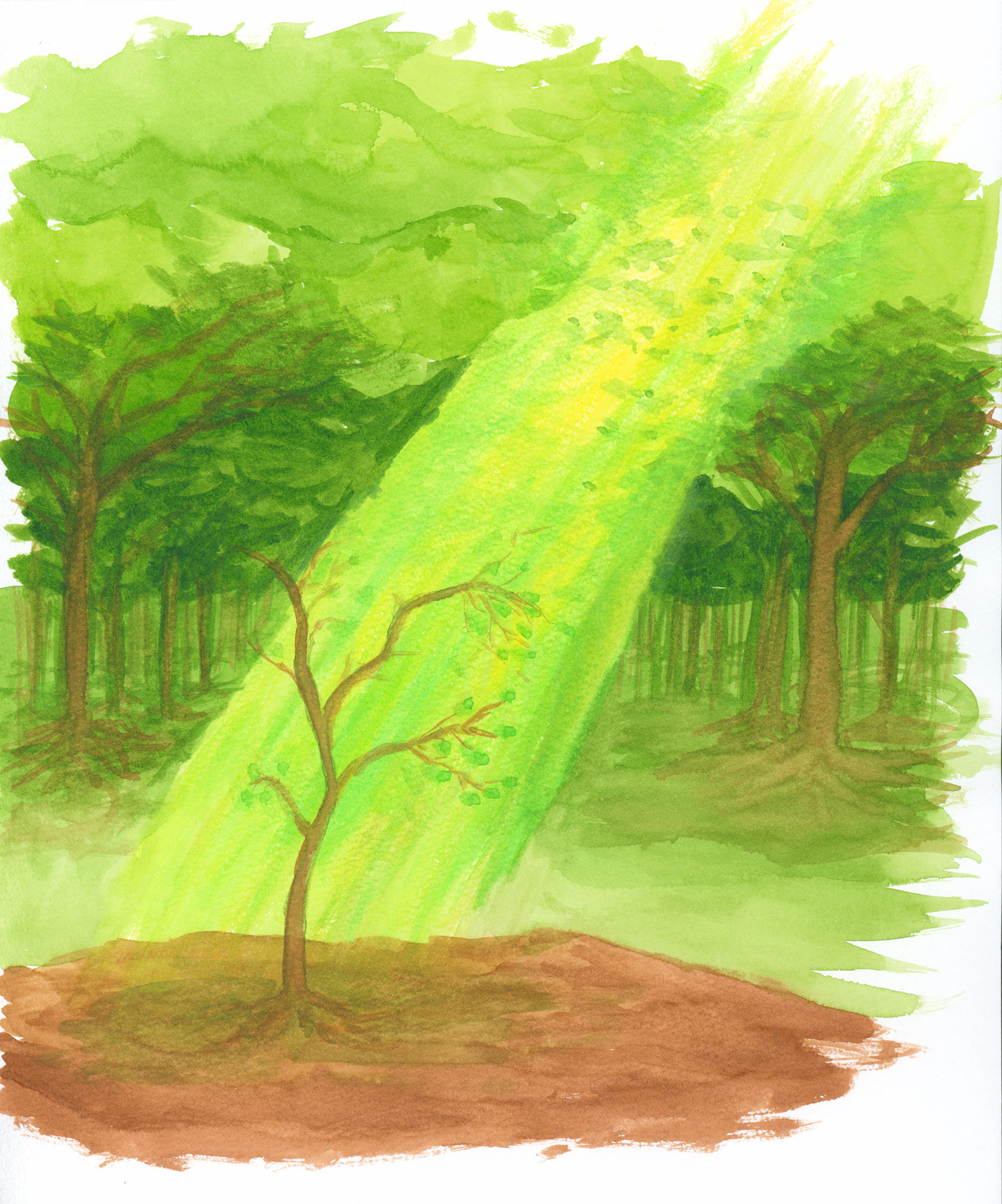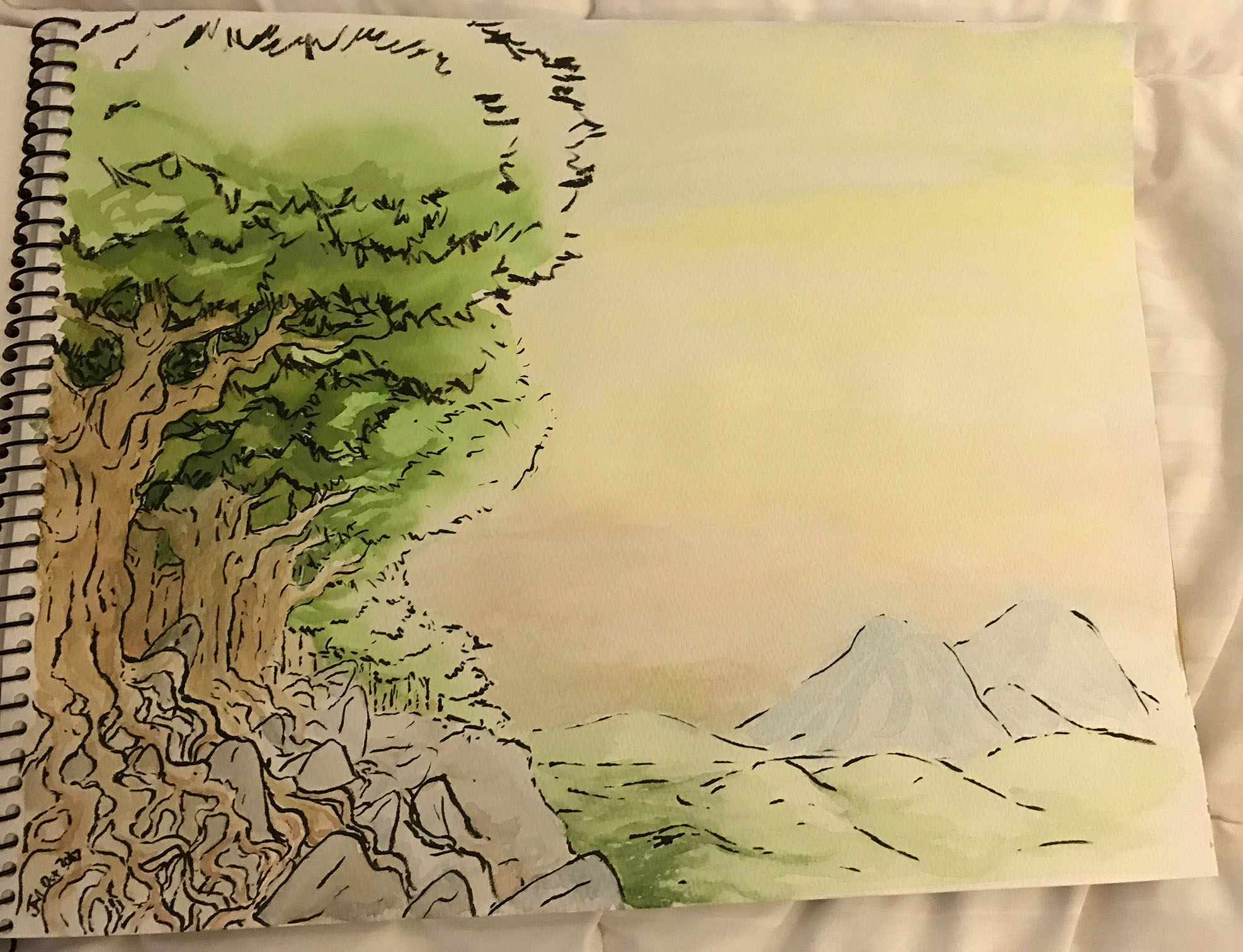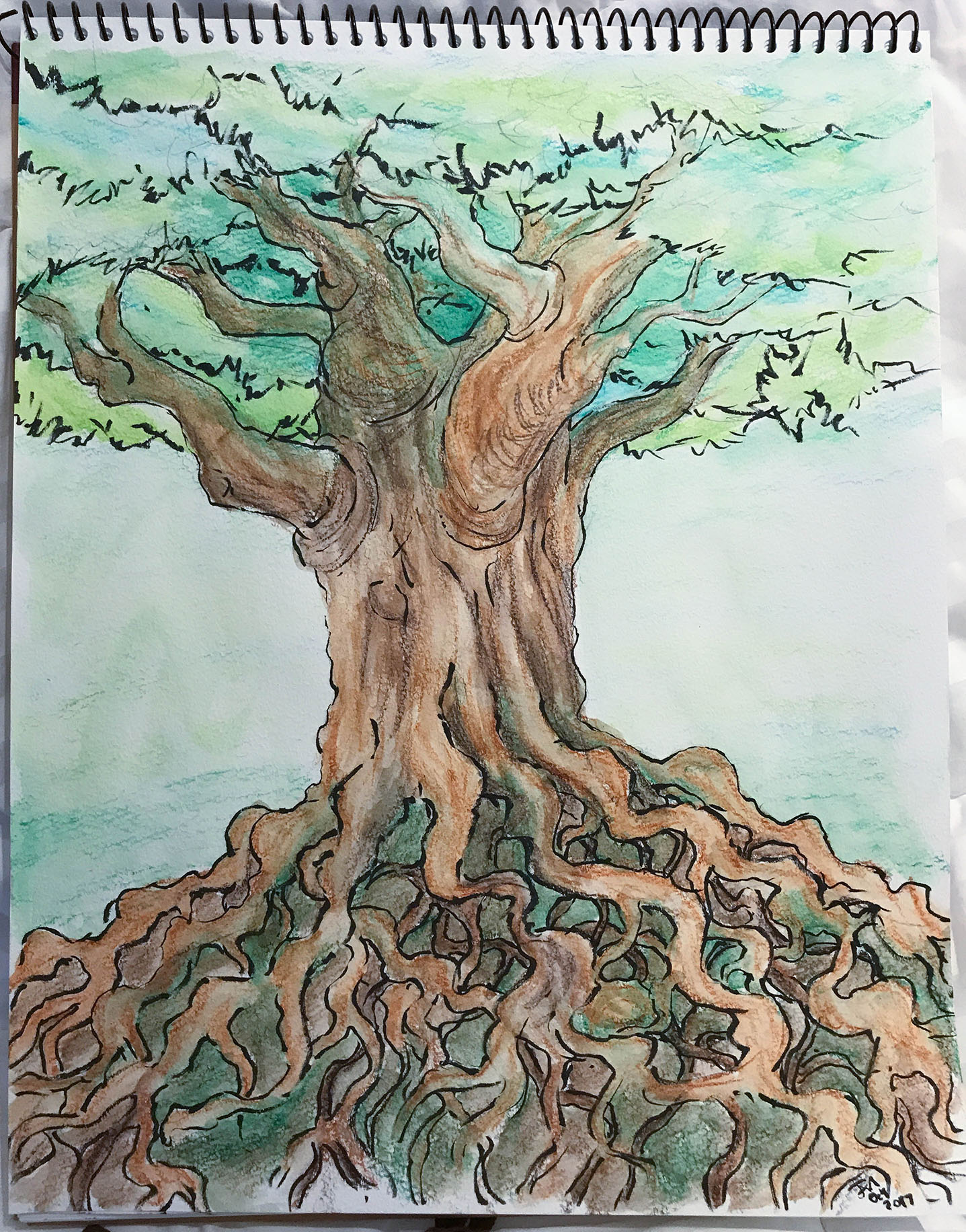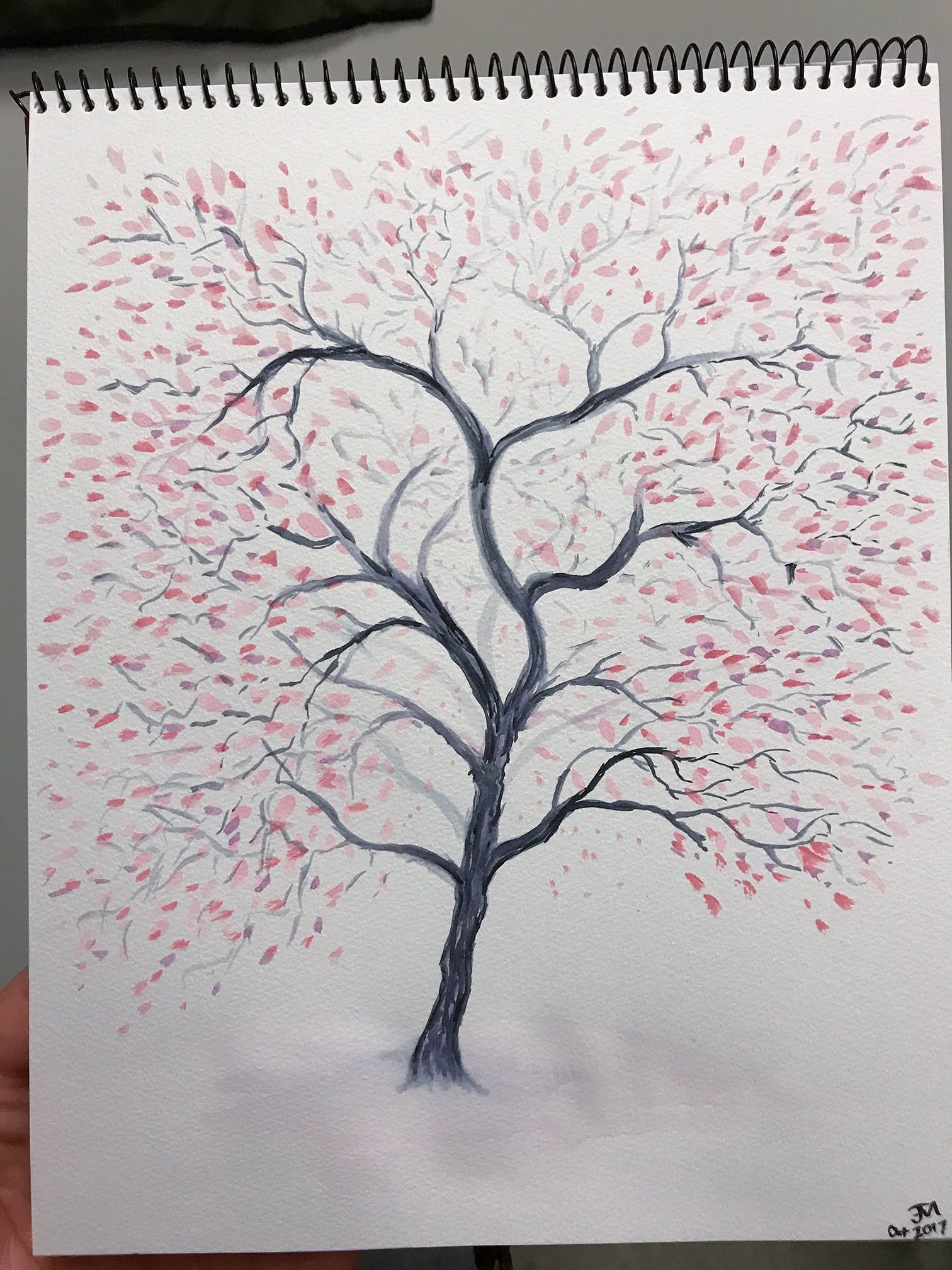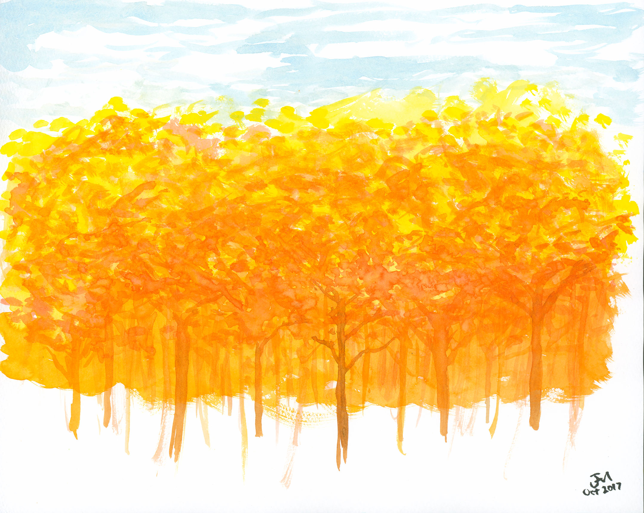 October 2017A watercolor of a tree. This piece was given away. |