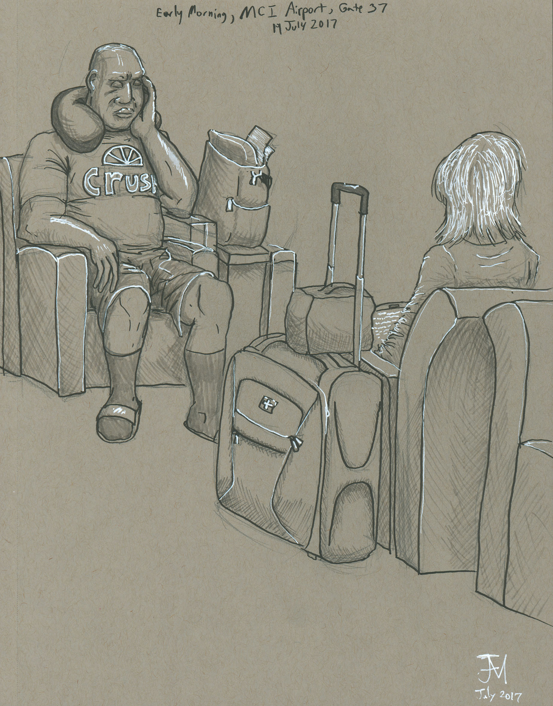 July 2017A sketch of the waiting area of the MCI airport, far too early in the morning, awaiting a flight to Denver. |