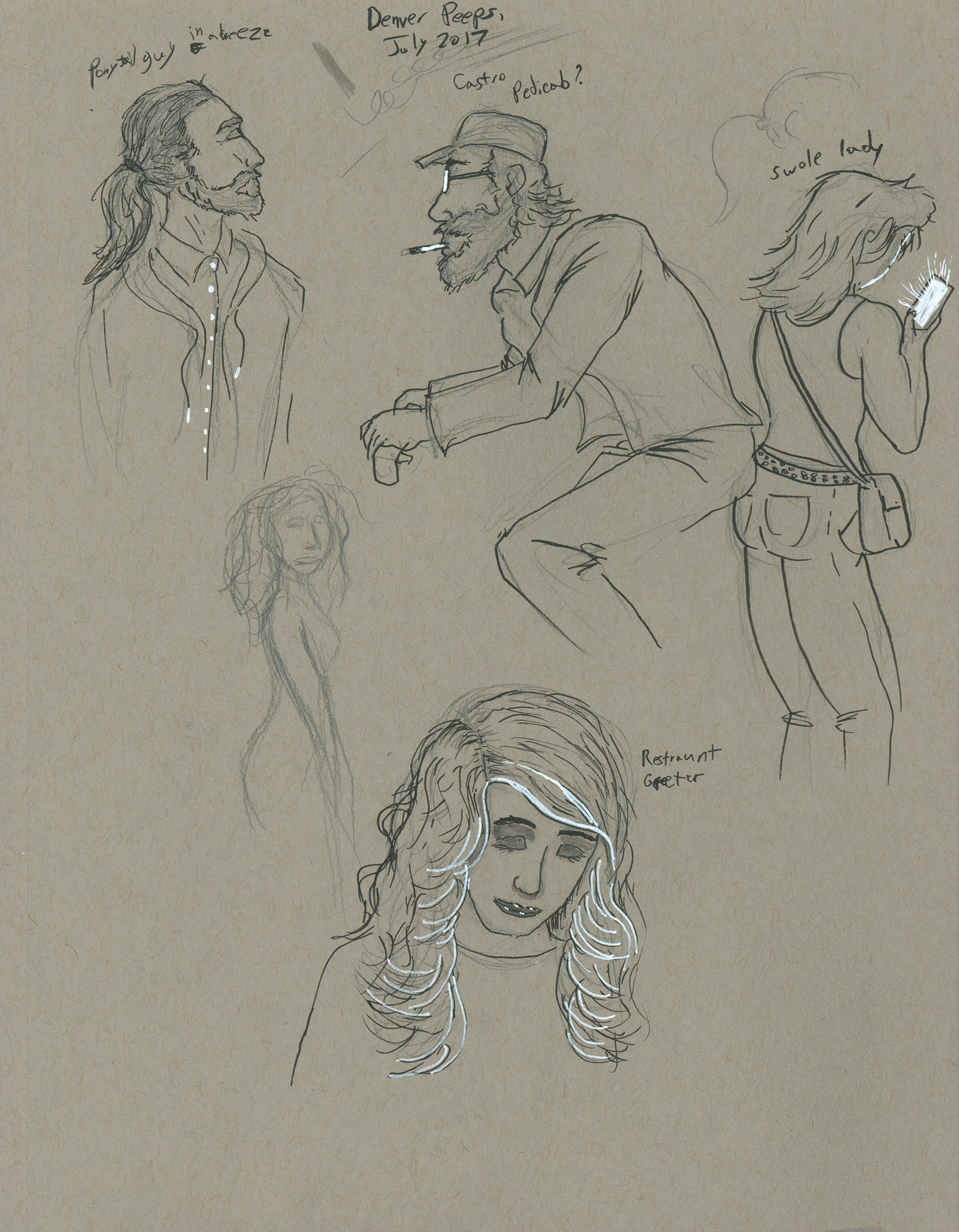 July 2017Sketches of people on the street and in restaurants in Denver. |