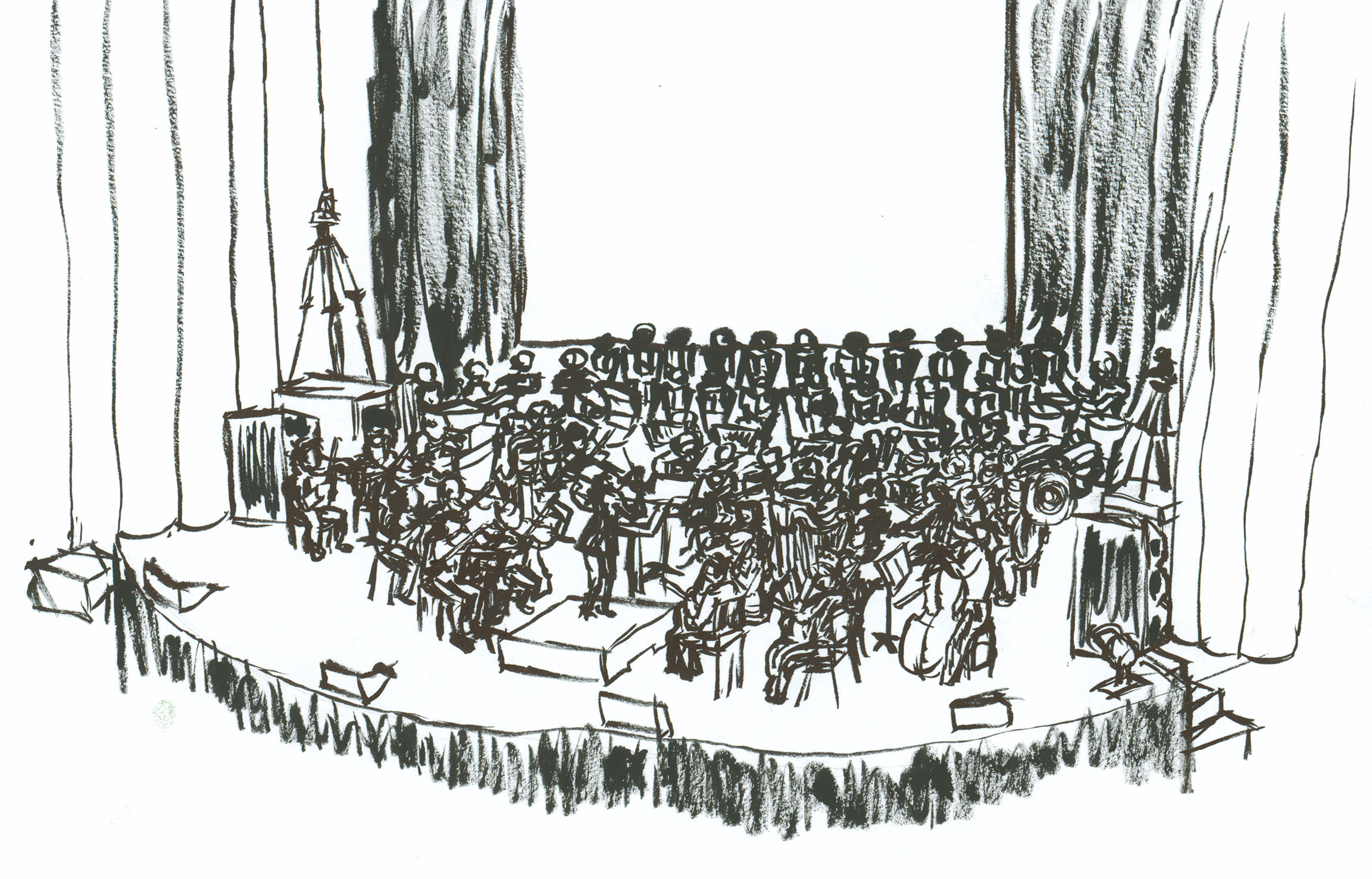 September 2017A brush sketch of an orchstra (it was very dark). |