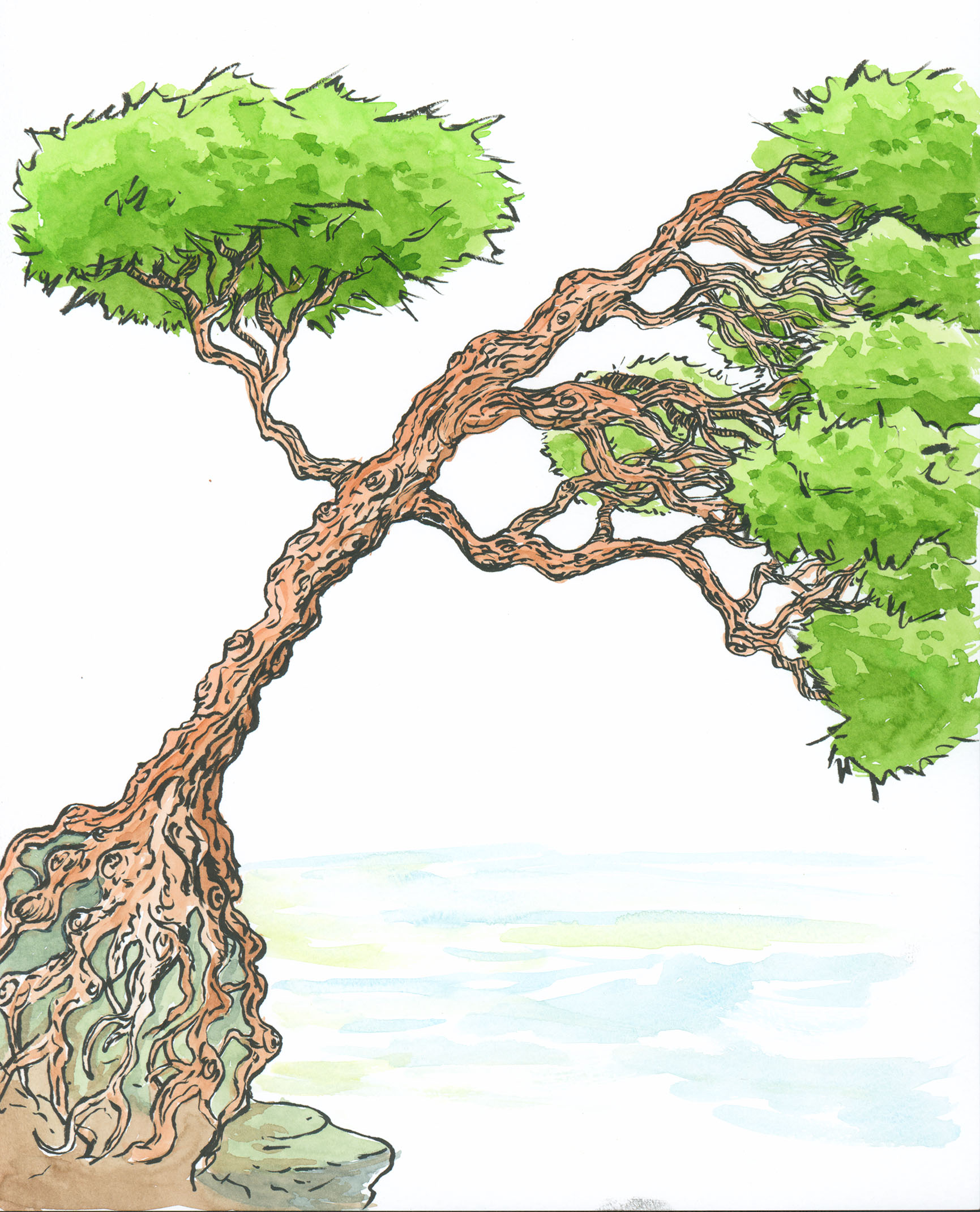 October 2017A watercolor of a tree clinging to a cliff. |