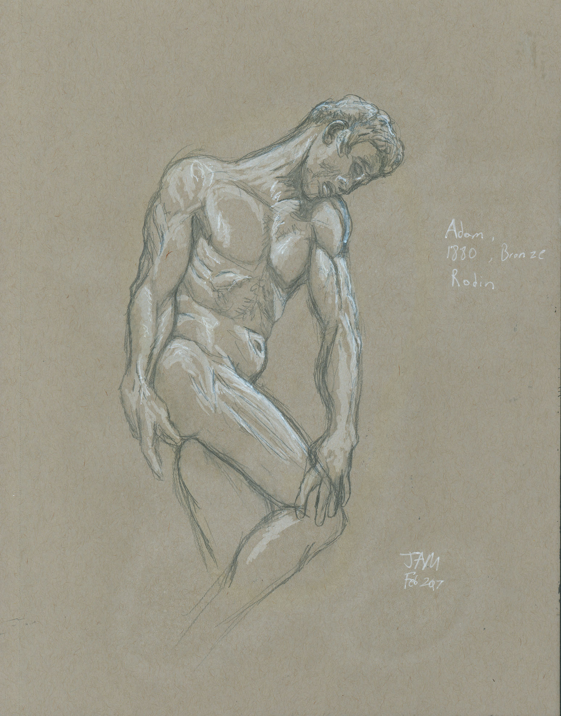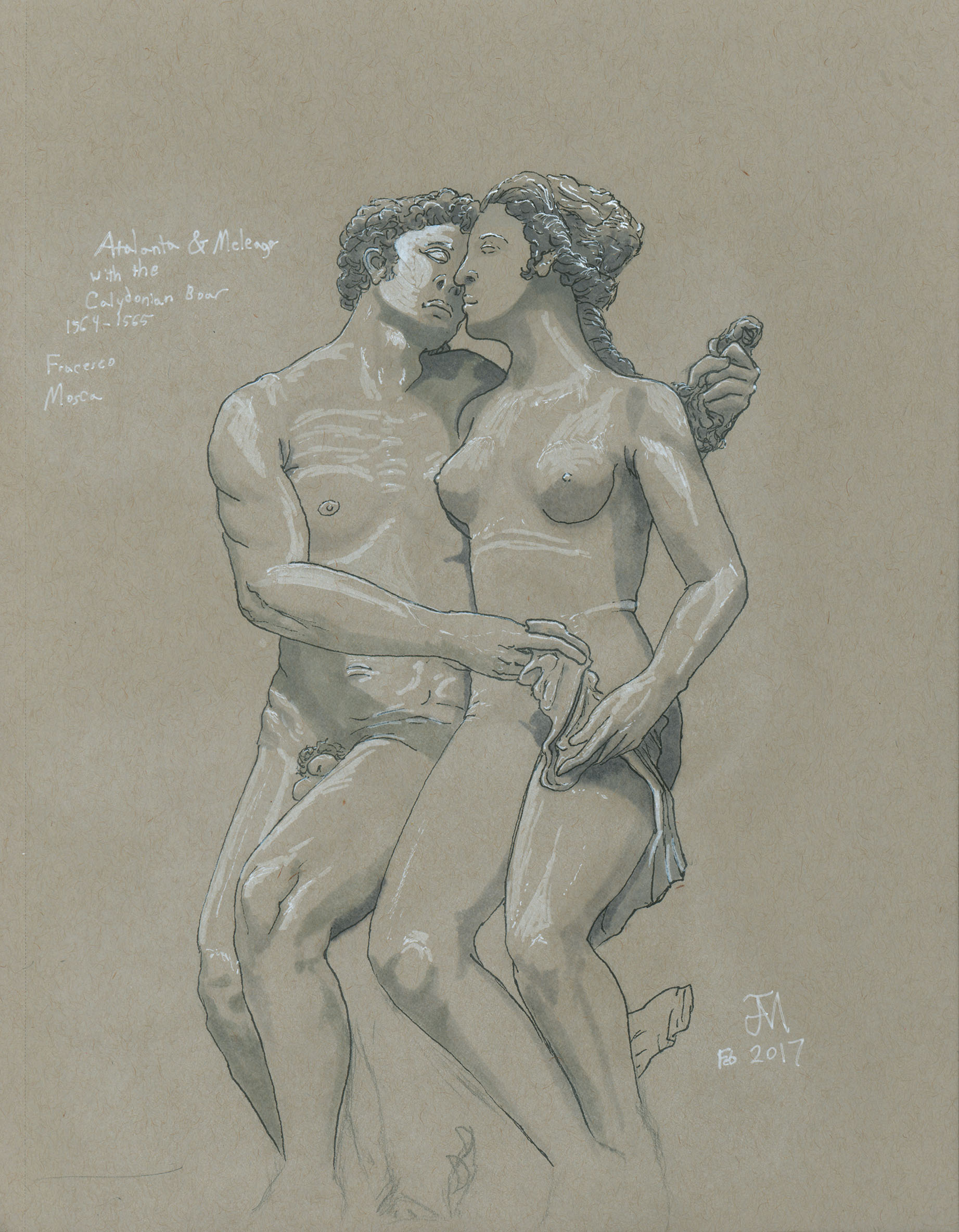February 2017A pen, grayscale marker and white paint pen drawing of a marble statue at the Nelson-Atkins Museum. |