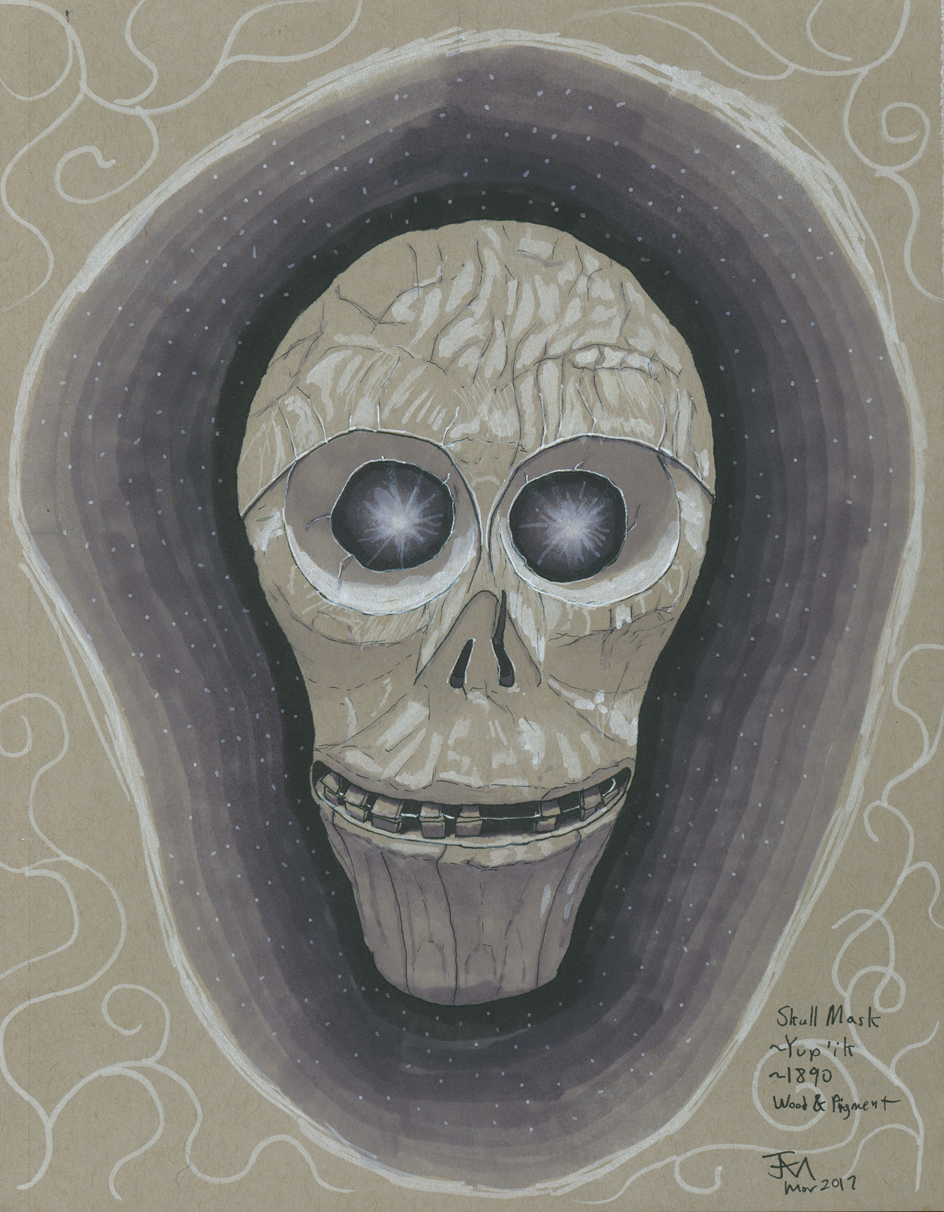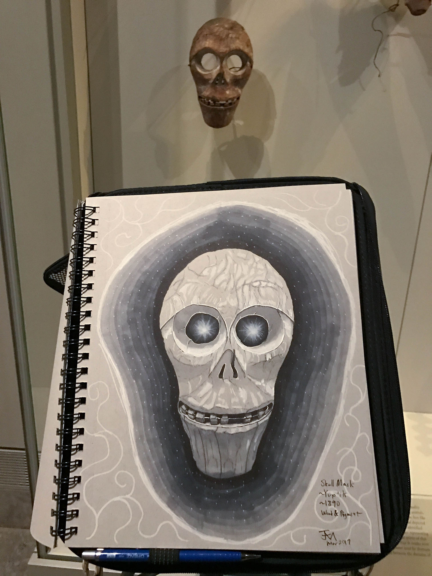 February 2017A pen, grayscale marker and white paint pen drawing of an Inuit skull mask at the Nelson-Atkins Museum. You can see the context of this drawing in the museum here. |