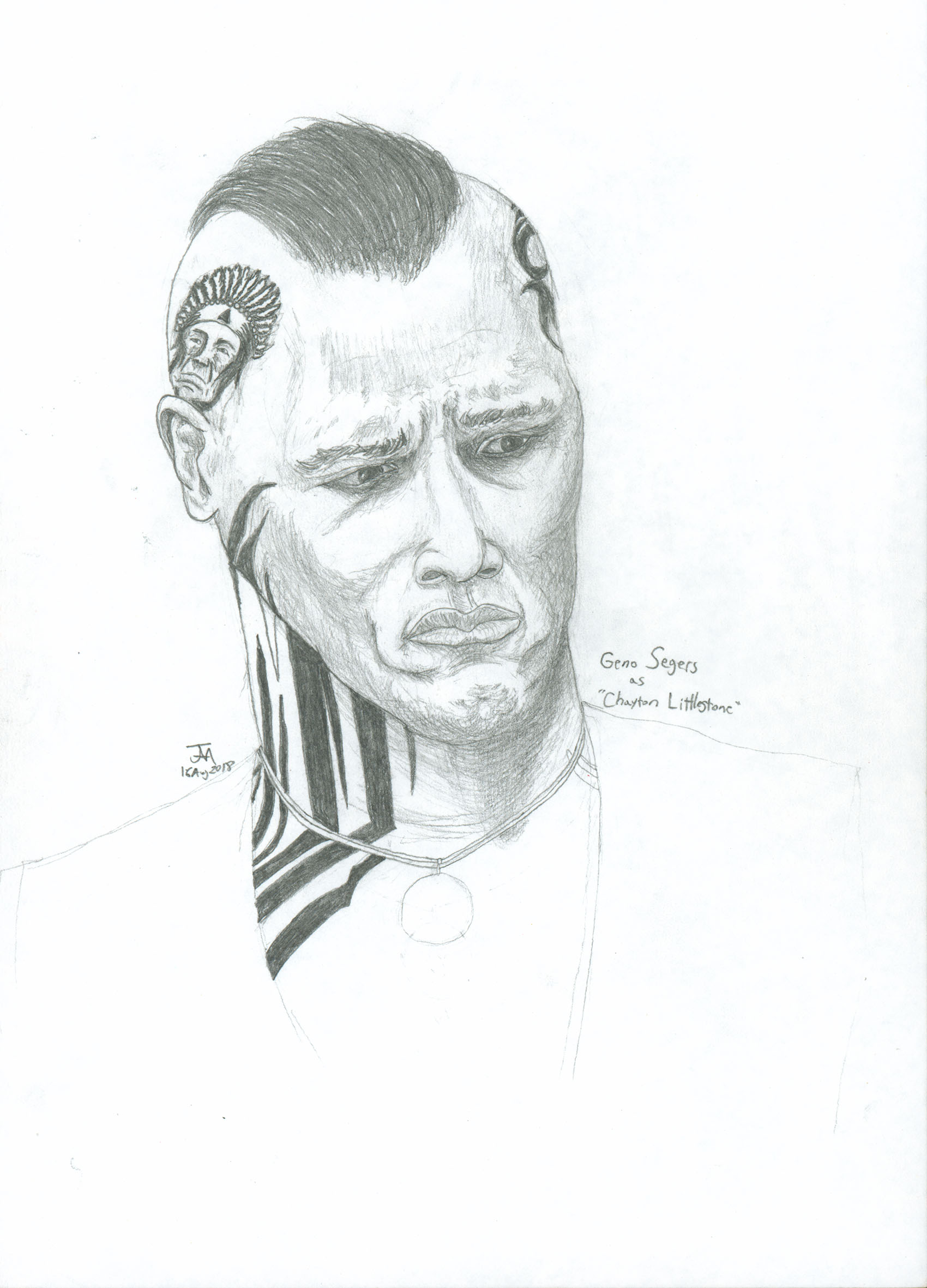 16 August 2018A practice sketch using a scene from a TV show I can't recall the name of which a co-worker was watching. This is a Native American character, and I liked his concerned expression. |